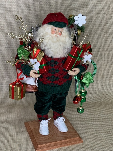 ALL Lynn Haney Santas NO LONGER COME IN A LOGO BOX. He will be single boxed for shipping and does not have a second or “keepsake” interior box.